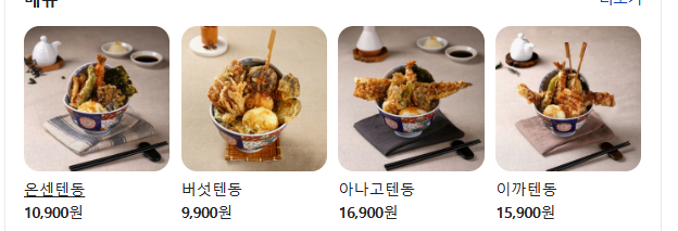 텐동과 우동세트 또한 인기가 많다고 합니다.