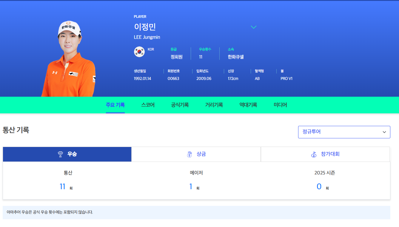 국가대표출신으로 KLPGA투어 무대에 데뷔해서 지금까지도 꾸준한 활약을 보여주고 있는 이정민프로에 대해서 알아보겠습니다.