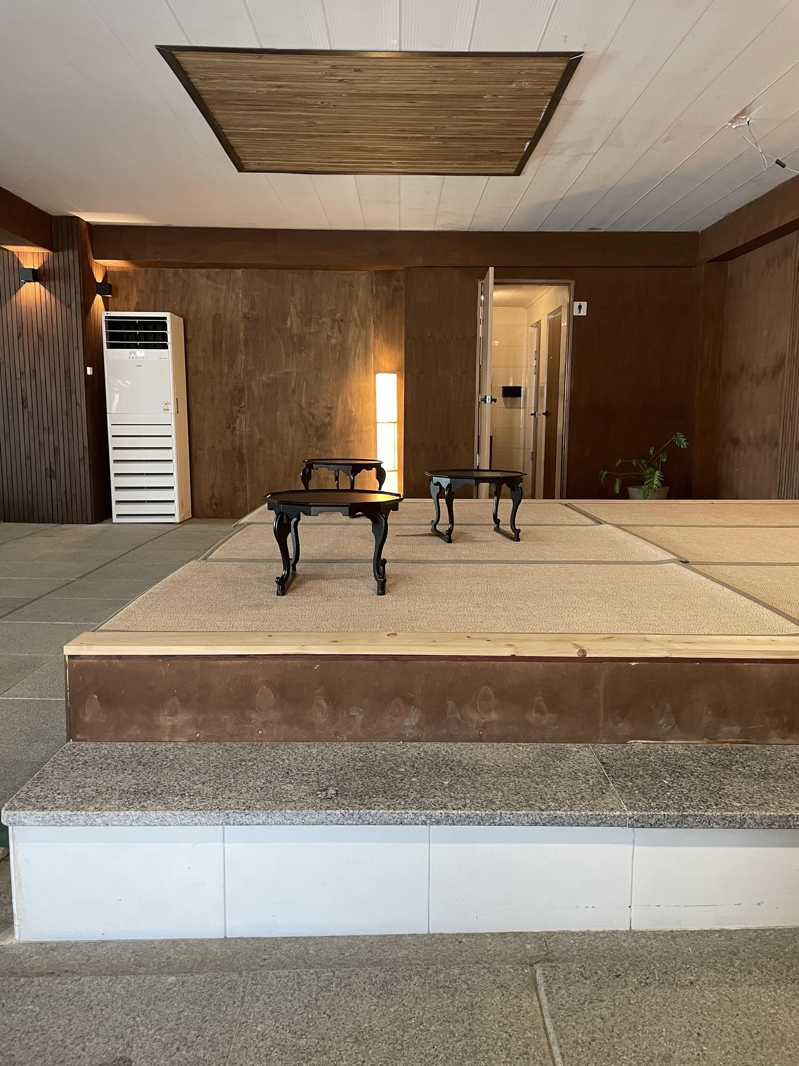 공간은 일본 온천 느낌의 공간/ 진짜 목욕탕 부분을 개조안 안쪽 홀로 두 공간의 느낌이 달랐습니다.