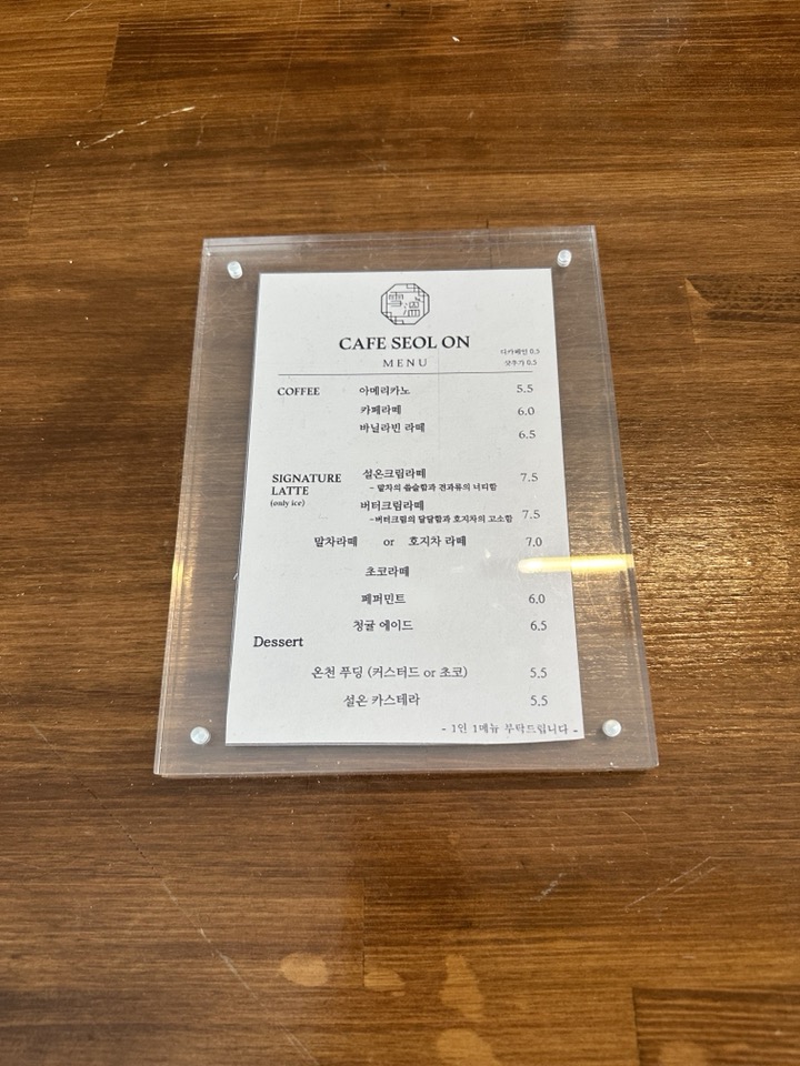 설온은 커피메뉴와 디저트 메뉴로 구성되어 있었습니다.