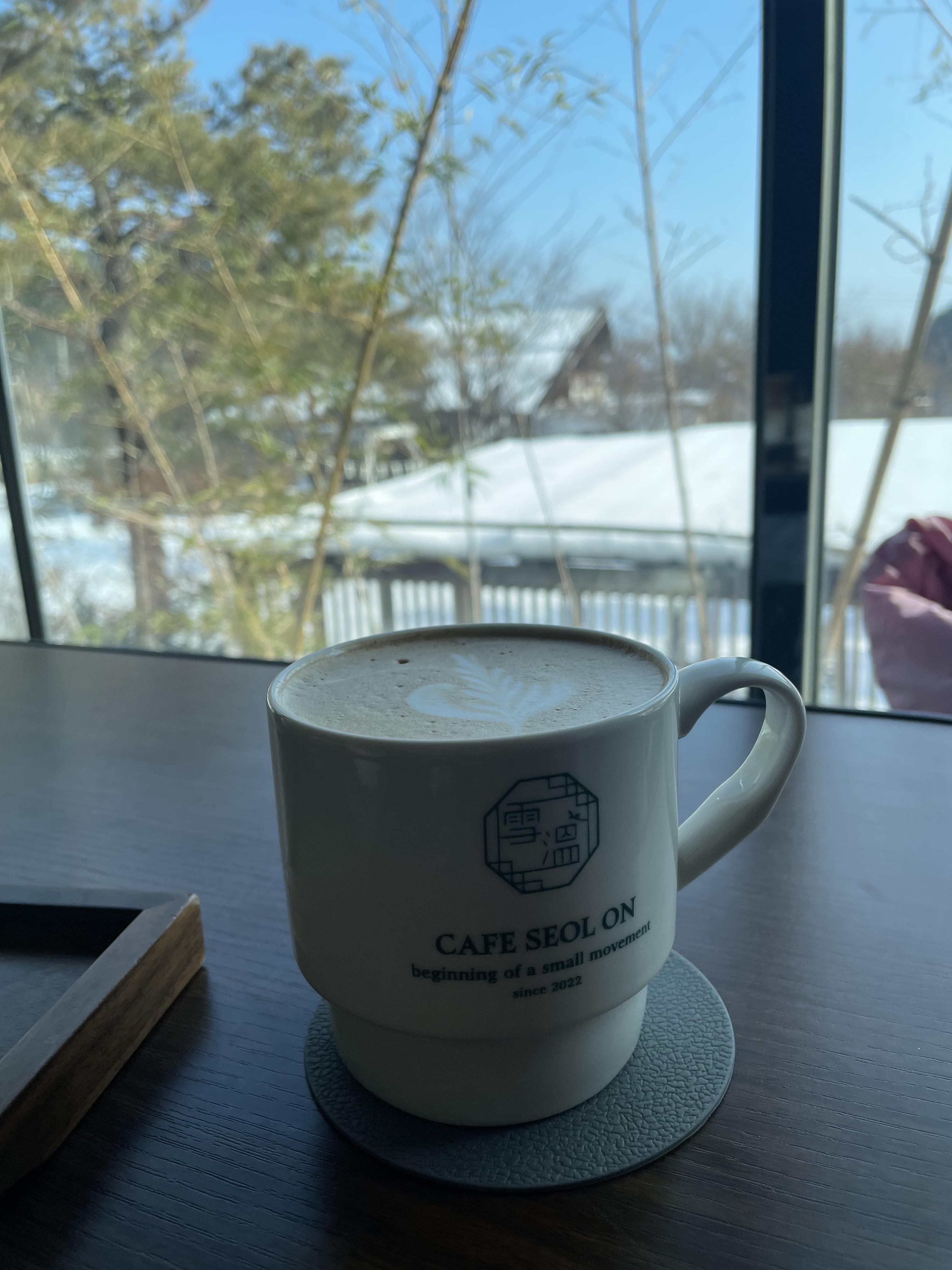 창 밖쪽은 코타츠가 있어서, 따뜻하게 커피를 마시면서 시간을 보낼 수 있어어 좋았습니다.