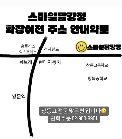 확장이전한 주소는 창동고등학교 맞은편에 위치하고 있는 스마일닭강정입니다.