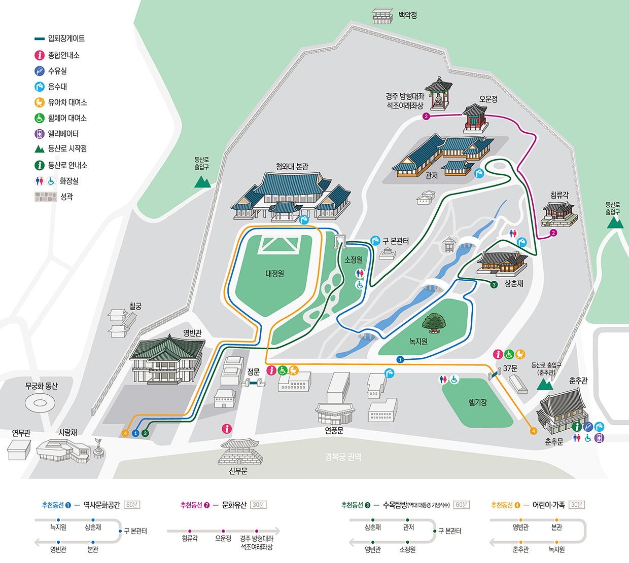 지도를 보면서 경내 주요 유적물을 찾는것도 하나의 청와대 관람의 묘미가 될 수 있습니다.
