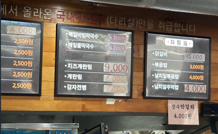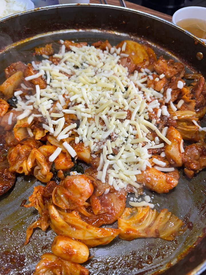 기본 닭갈비메뉴가 있고, 기호에 맞춰서 사리를 추가할 수 있습니다. 우동사리, 쫄면사리, 라면사리 및 K 디저트라고 할 수 있는 날치알볶음밥도 마지막에 볶아 먹을 수 있습니다.