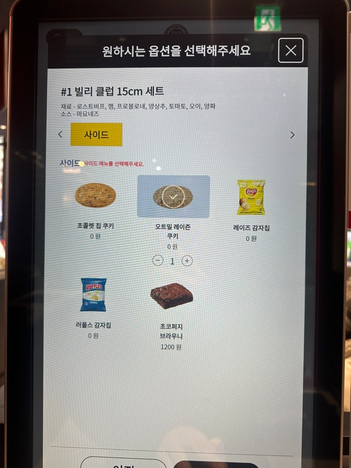 세트를 시킬경우 원하는 사이드도 함께 고릅니다.
