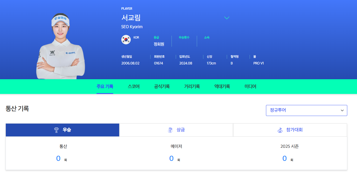 서교림프로는 2025년 KLPGA 정규투어에 데뷔하게 되서 아직까지 KLPGA투어의 우승기록은 없습니다.