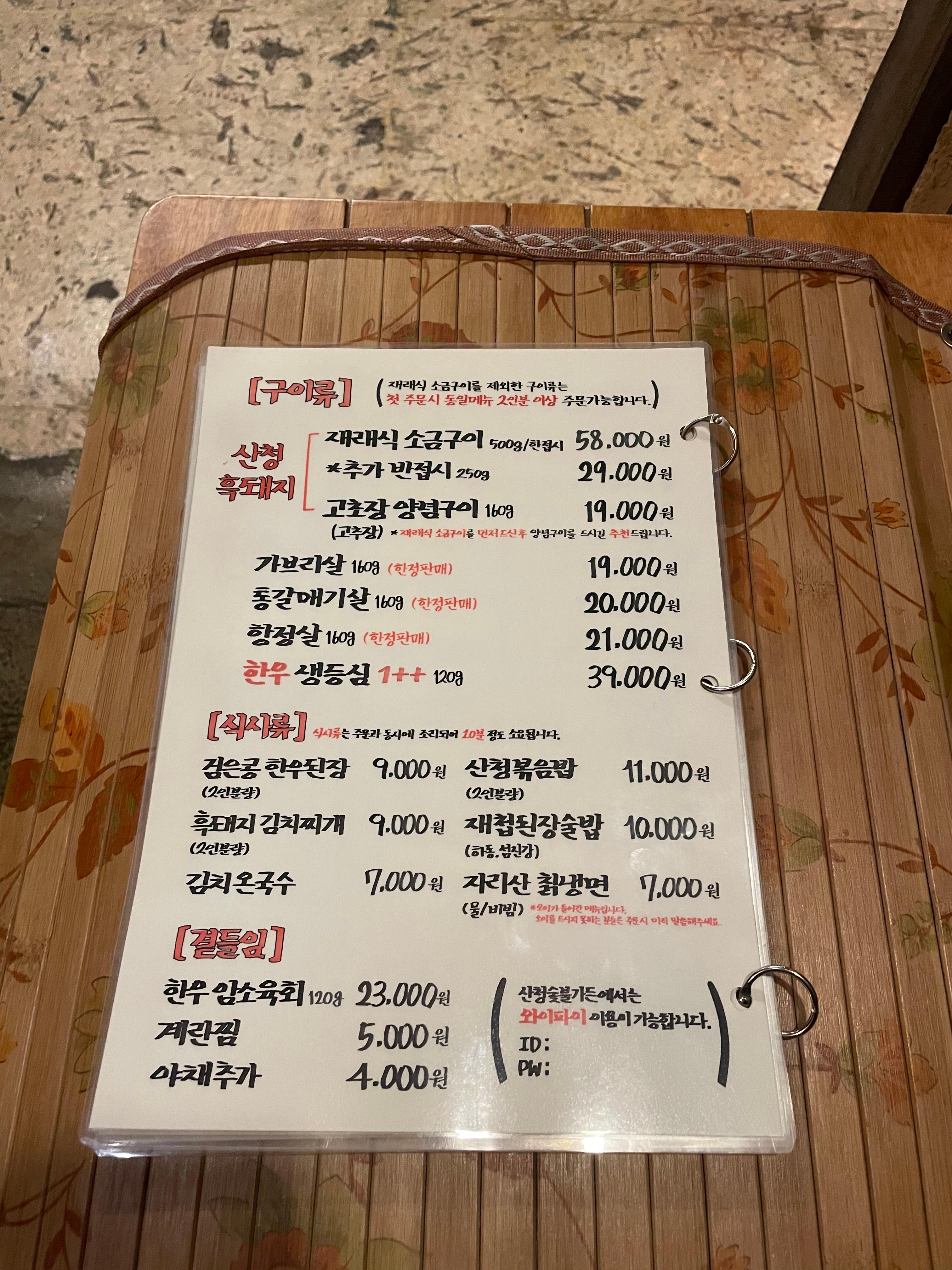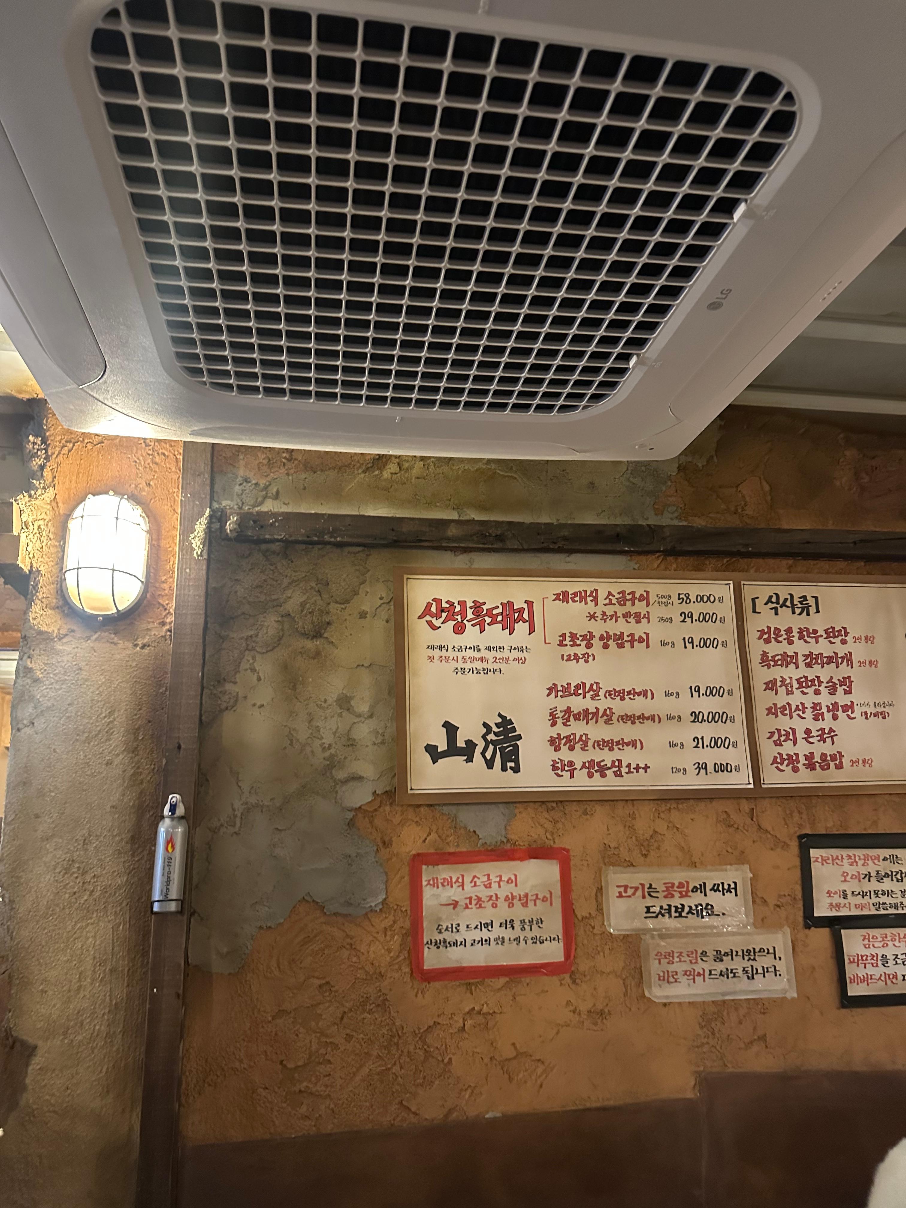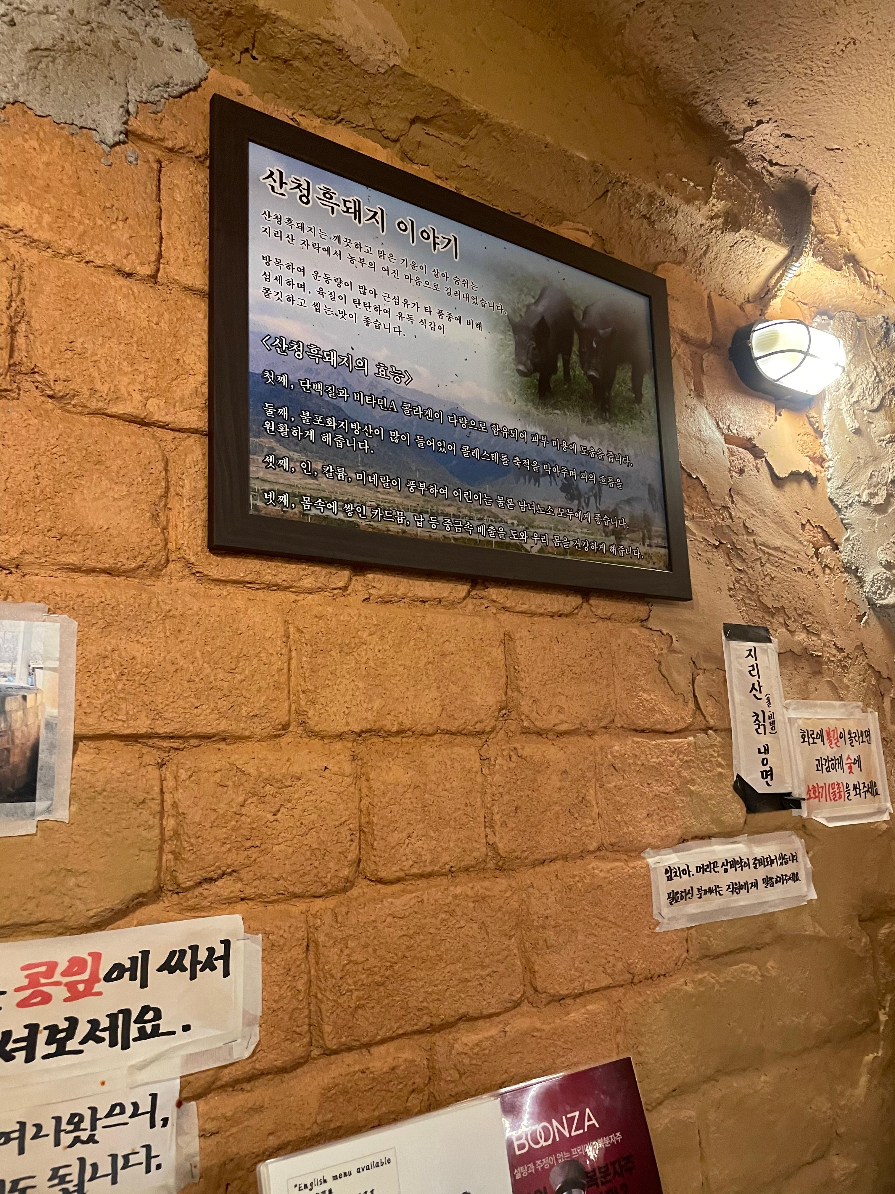 자리에 앉아서 주문을 하고 산청흑돼지 맛을 기다립니다.
