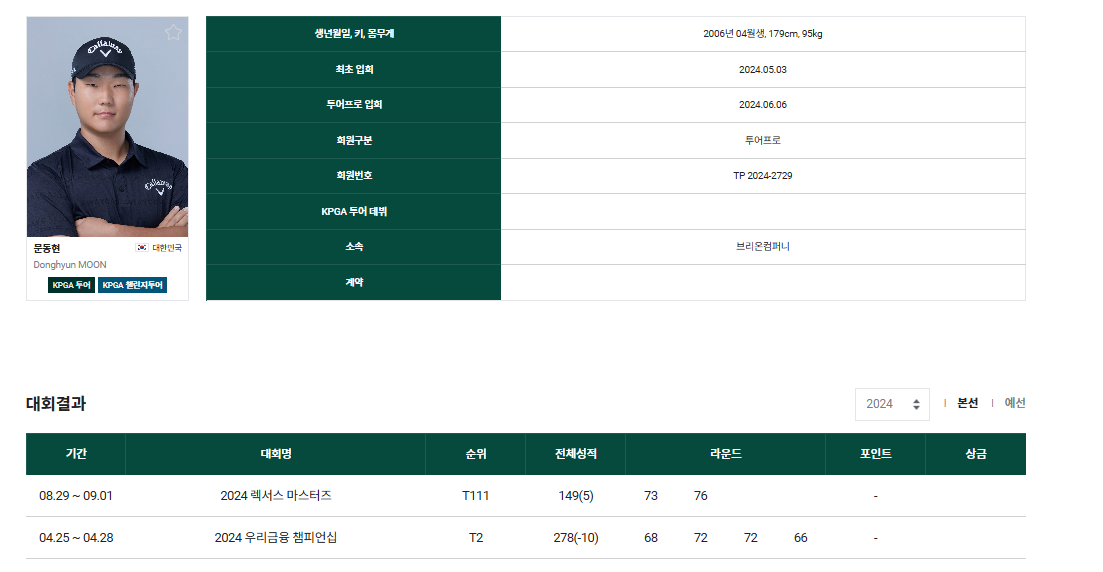 KPGA투어 - 문동현프로 프로필