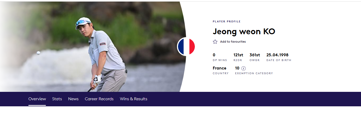 프랑스에서 태어나서 자란 고정원 프로는 프랑스 교포 출신의 프로 골퍼로, 현재 유러피안 투어인 DP 월드 투어에서 활동하고 있습니다.