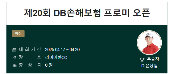 | 1 | 04.17-04.20 | 제 20회 DB손해보험 프로미오픈 |