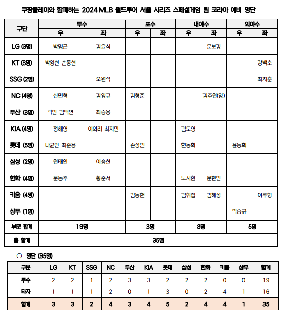 얼마전 KBO에서는 2024년 MLB 월드투어 서울 시리즈의 스페셜 게임을 위해서 선수 명단을 발표했습니다. 한국 프로야구에서 활약하는 선수들의 이름을 확인할 수 있고, 실제로 어떤 게임이 이뤄질지 매우 기대가 됩니다.!