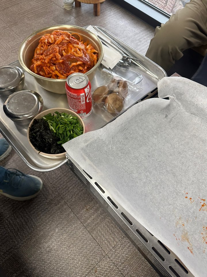 주문즉시 메뉴가 나오며 자리에서 구워먹는 셀프서비스 시스템입니다.