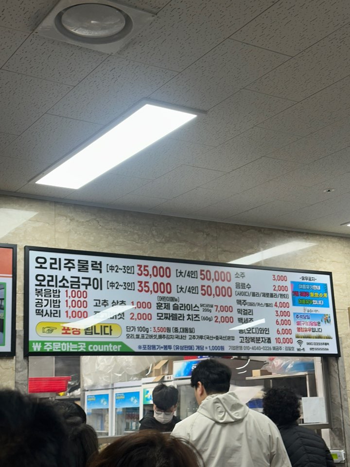 메뉴는 오리주물럭/ 소금구이 두 종류이며, 대부분은 오리주물럭을 주문하는 것 같습니다.