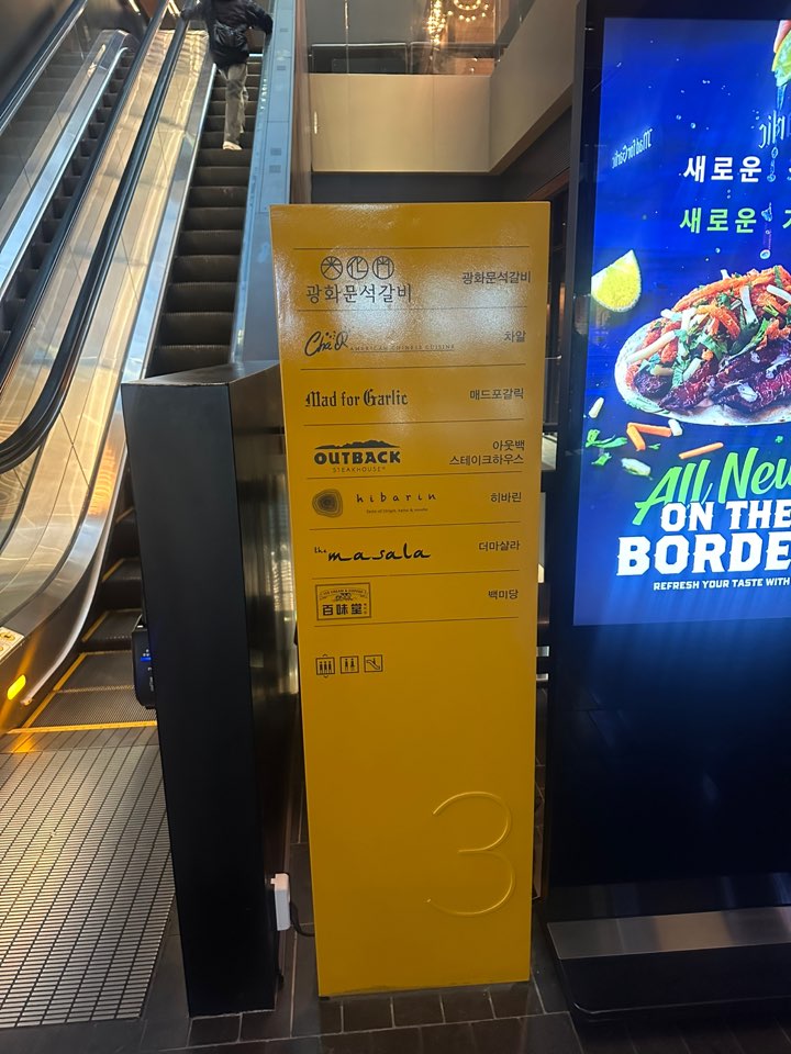 디타워 3층에 위치하고 있고, 광화문 석갈비, 차알, 메드포갈릭, 아웃백 스테이크하우스, 더 마샬라, 히바린과 같은 층에 위치하고 있는 백미당입니다.