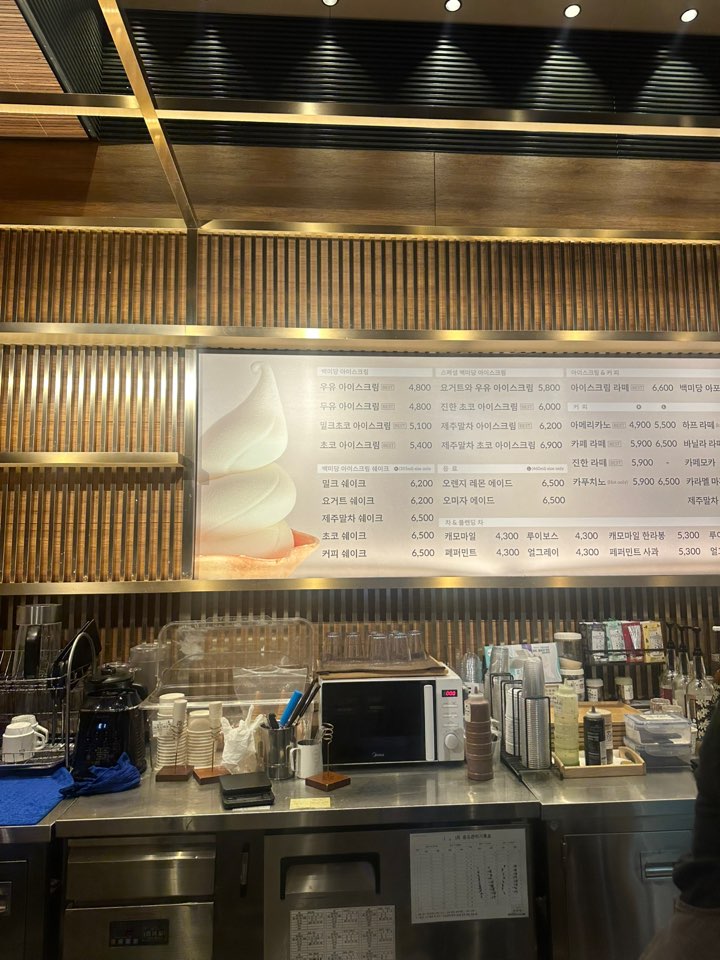 우유가 메인인 백미당이므로, 우유가 들어가 있는 라떼류, 아포가토, 아이스크림류가 인기입니다.