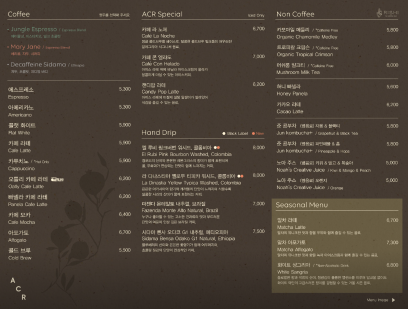 판교카페 - 알레그리아 (ACR커피) 메뉴