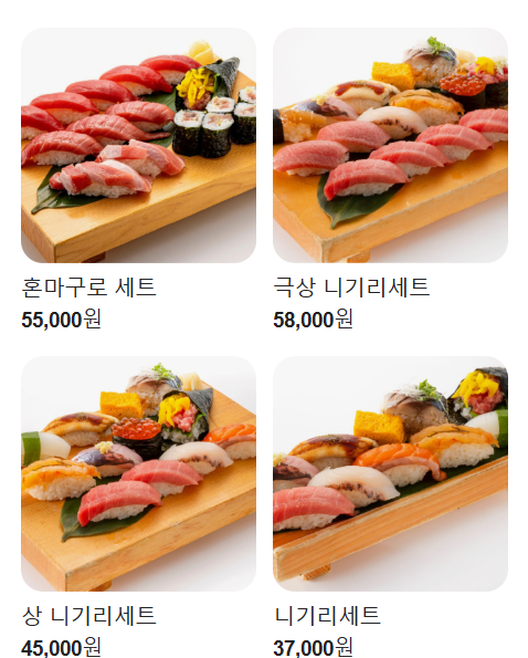 이타마에스시의 추천메뉴는 극상 니기리세트 및 혼마구로세트입니다.