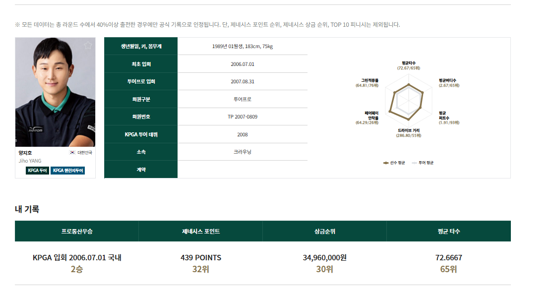 KPGA투어 2승을 기록하고 있는 양지호프로입니다.