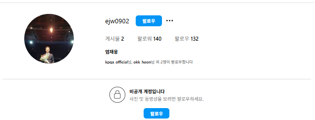 현재 엄재웅프로의 인스타그램 계정은 비공개입니다.