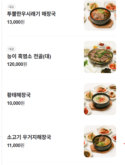 왕갈비탕의 깔끔한 국물과 고기의 조화도 권할머니한우해장국에 추천메뉴입니다.