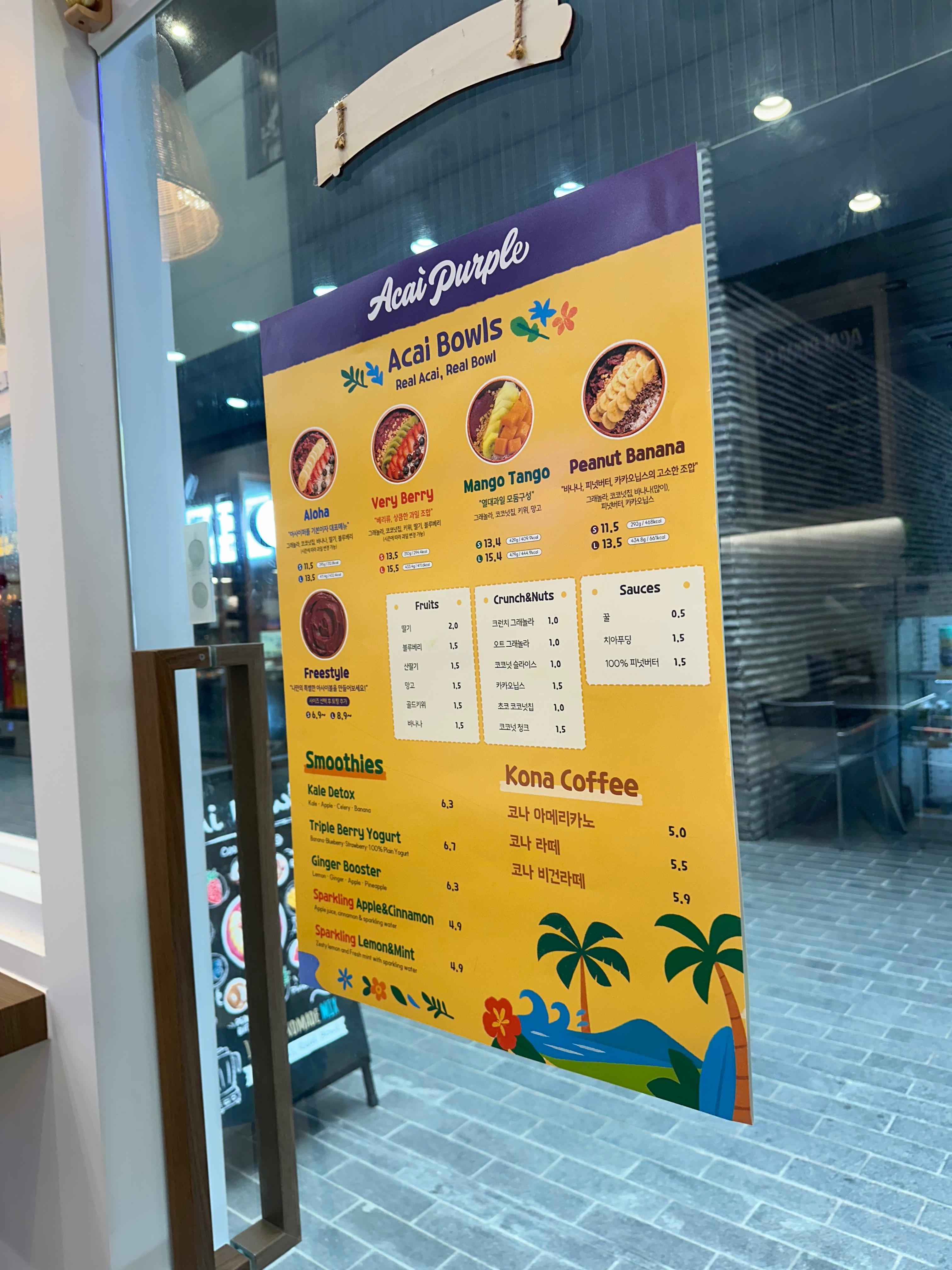 그런 국내 최초의 아사이볼 전문 브랜드인 아사이퍼플이 광화문에 생겨서, 광화문 직장인들의 편리한 한끼를 제공할 수 있게 되었습니다.