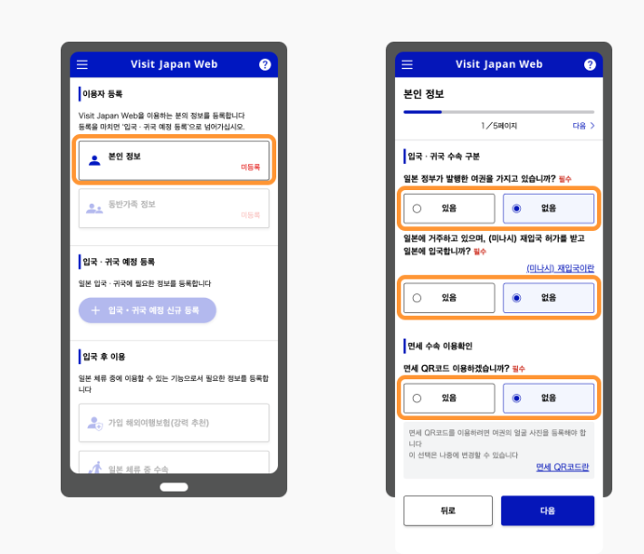 사전에 비짓저팬 웹에서 정보를 등록해 놓으면, 비행기 기내에서 따로 종이로 된 입국신고서를 작성하지 않아도 되서 편리하고, 한 번 등록해 놓으면 기록이 되서 다음번에 일본방문시 편하게 이용할 수 있습니다.