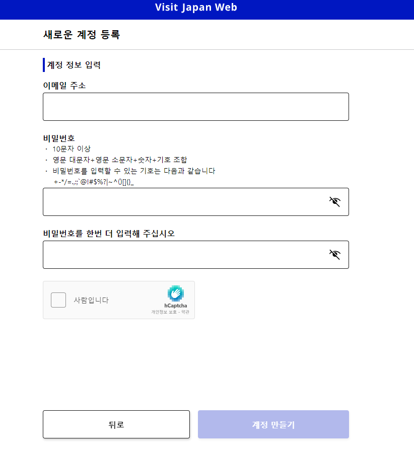 비짓저팬은 앱은 존재하지 않으며, 웹사이트에서 등록하는 시스템입니다.