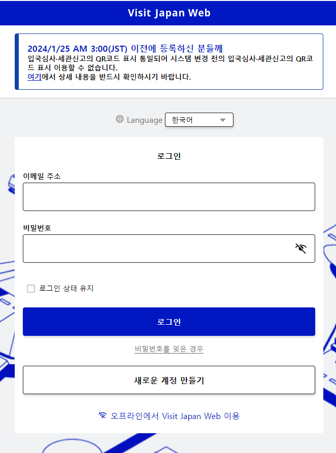 *비짓저팬웹의 일부기능은 오프라인에서도 사용가능 합니다.