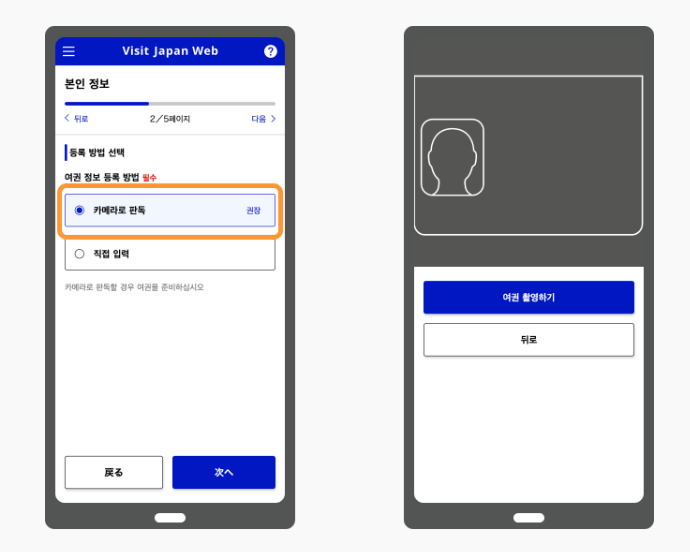 비짓저팬 앱에 처음 등록시, 여권도 등록해야 합니다.