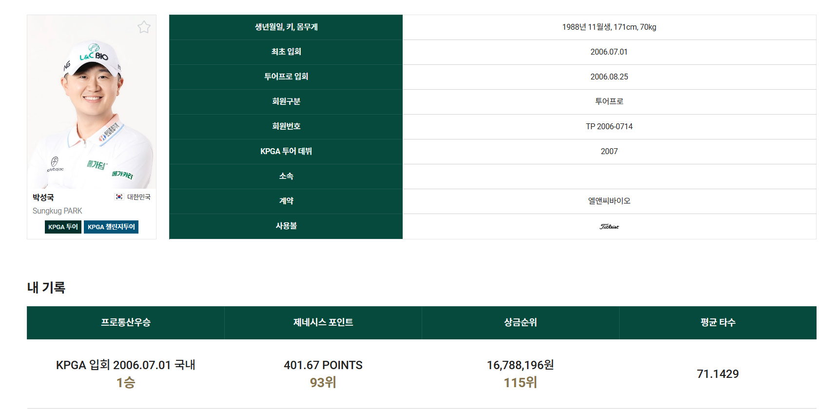 데뷔 : 2006 KPGA 입회