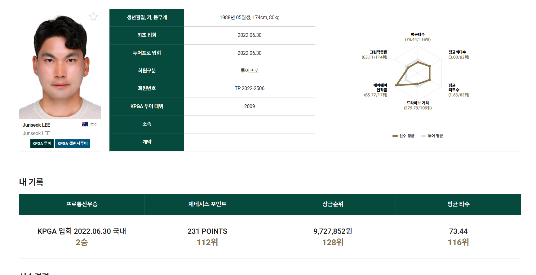 KPGA투어 - Junseok LEE 이준석프로 프로필