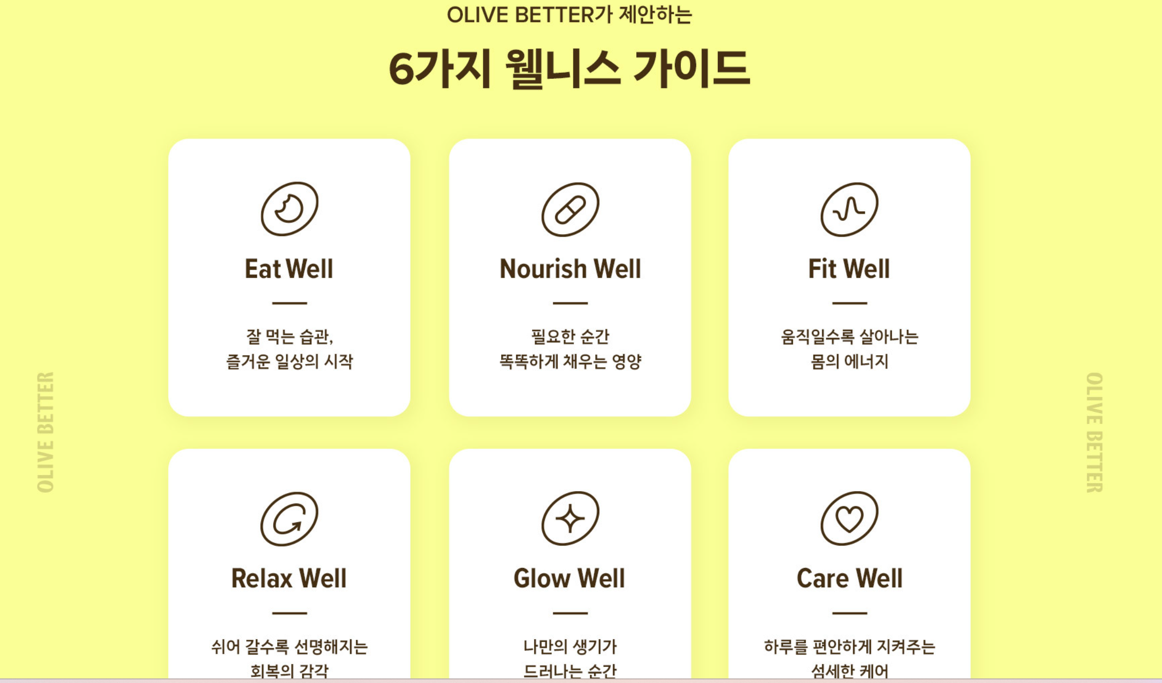 - Olive Young은 기존의 뷰티 중심에서 건강과 라이프스타일 전반으로 확장하려는 전략의 일환으로 Olive Better을 선보였습니다.