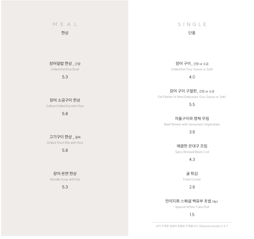 혹시, 장어를 드시지 못하는 분들을 위해서 고기 메뉴도 준비되어 있는 걸 볼 수 있습니다.