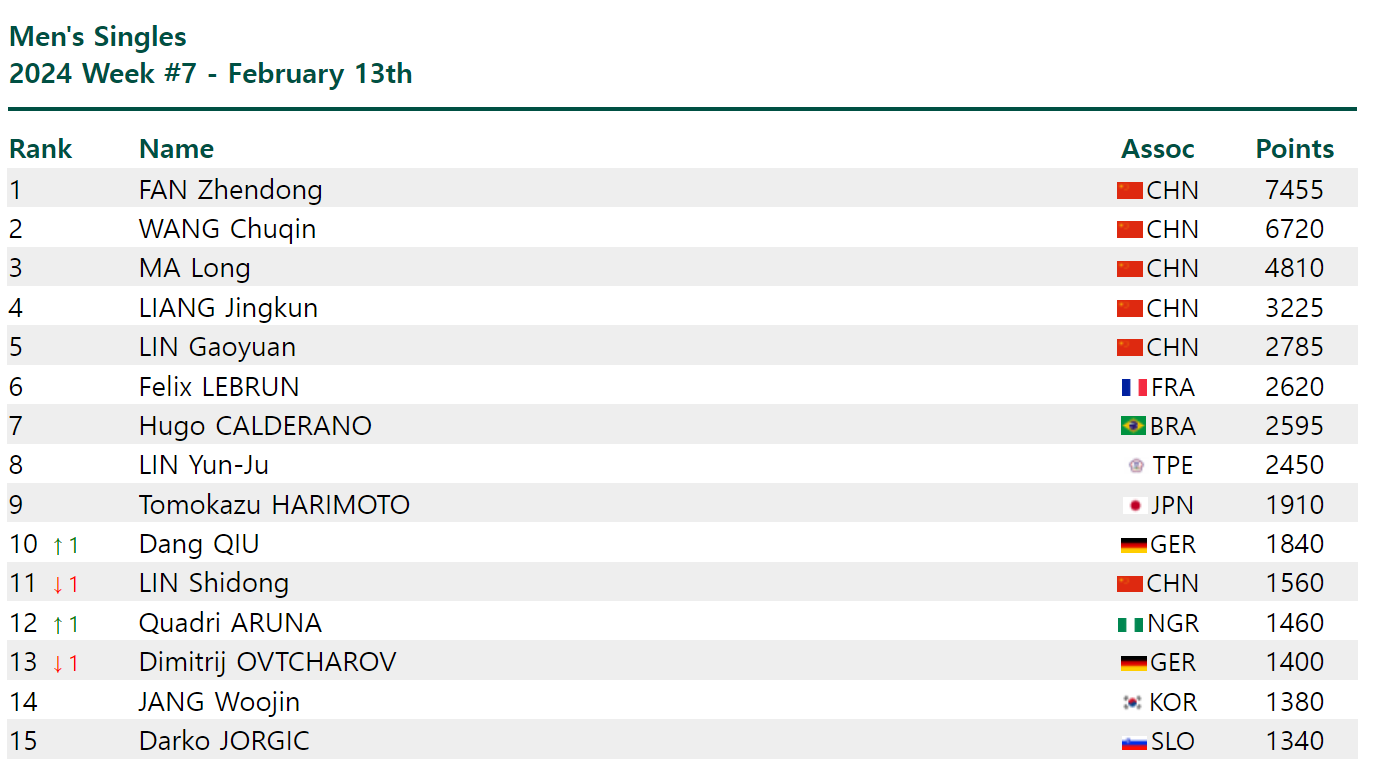 현재 ITTF 세계랭킹 남자단식으로 우리나라 선수중에는 세계 15위를 기록하는  장우진 선수가 가장 선두권에 있습니다.