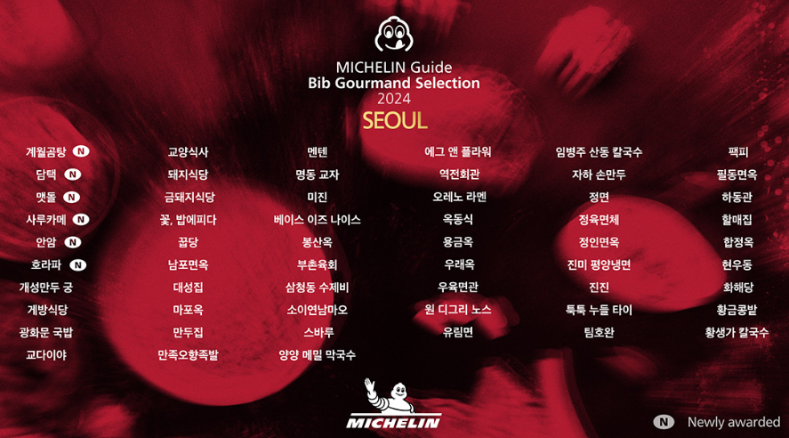서울의 '빕 구르망(Bib Gourmand)' 레스토랑 리스트가 공개되었습니다. 이번에 새롭게 추가된 6곳을 중심으로 2024년 미쉐린 가이드 서울 빕 구르망 레스토랑은 총 57곳으로 구성되어 있습니다.