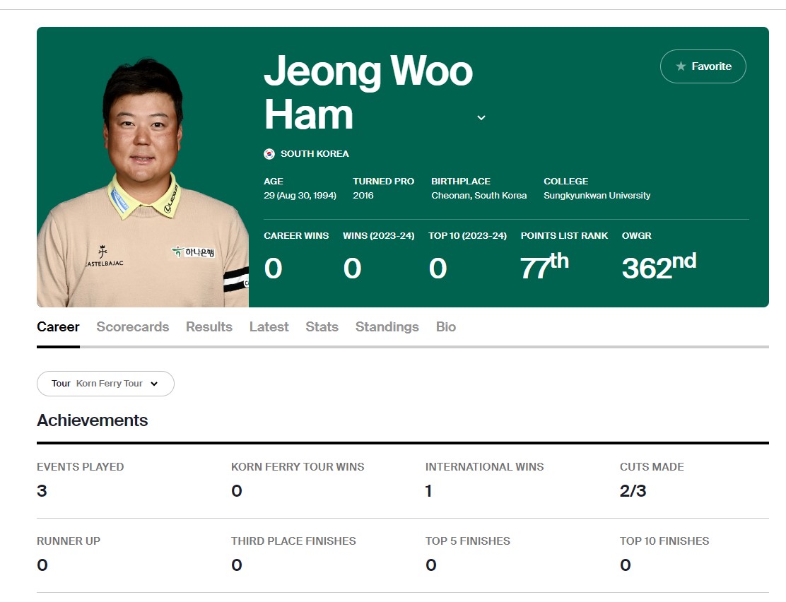 KPGA 함정우 프로 - 2024년 DP투어, 콘페리투어, PGA투어 도전 ( 프로필, 결혼, 강예린프로, 우승기록)